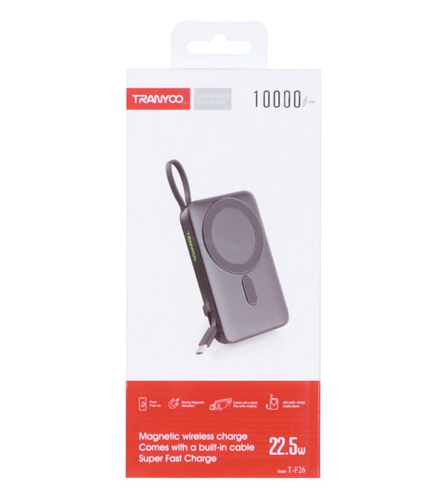 پاوربانک ترانیو مدل T-F26 ظرفیت 10000 میلیآمپر یک شارژر همراه کامل و کاربردی است که با امکانات شارژ سریع سیمی، شارژ بیسیم، نمایشگر LED و کابل داخلی یک گزینه عالی برای استفاده روزمره، سفر و مواقعی که به جریان برق دسترسی ندارید فراهم میکند.