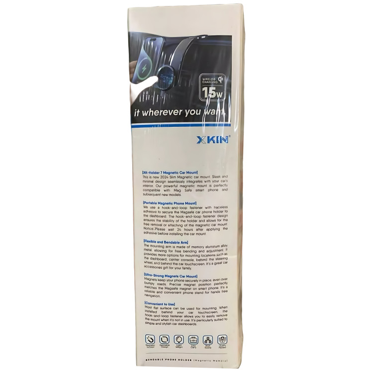هولدر و شارژر بیسیم مغناطیسی Xkin Magnetic Wireless Charging Car Phone Holder پایه نگهدارندهای است که علاوه بر نگهداشتن گوشی در خودرو، امکان شارژ سریع بیسیم را نیز فراهم میکند. این هولدر با طراحی جمعوجور و نصب آسان روی داشبورد یا سطح صاف، انرژی گوشی را بدون نیاز به کابل تأمین میکند و با سیستم مگنتی قوی دستگاه را در طول مسیر ثابت نگه میدارد. قابلیت چرخش ۳۶۰ درجه این امکان را میدهد که گوشی را در زاویه دلخواه برای مشاهده بهتر نقشه، تماس یا پخش رسانه قرار دهید.